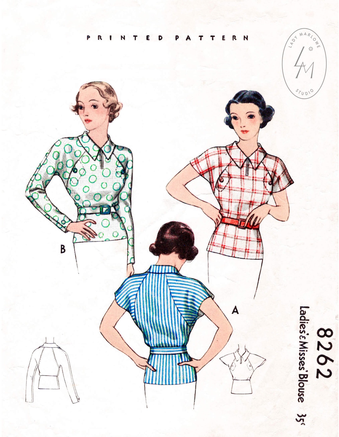 1930s Blouse Vintage Pattern Reproduction Raglan Kimono Etsy Hong Kong